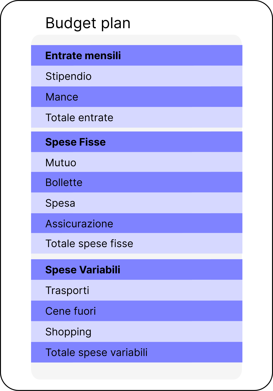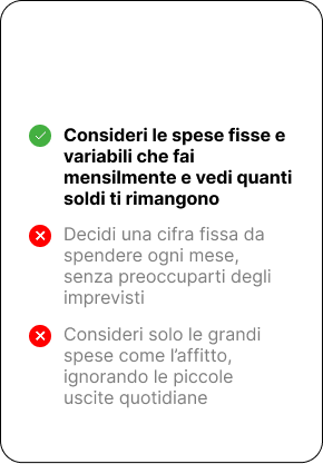 Il primo passo per creare il budget mensile è identificare e quantificare tutte le spese per determinare quanti soldi ti restano per altri obiettivi, come il risparmio.