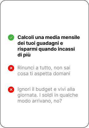 Usare una media dei guadagni ti aiuta a vivere in modo sostenibile e ti permette di accantonare quando i ricavi sono più alti.