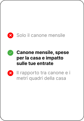 Considerare solo il canone mensile e il rapporto tra canone e metri quadri della casa non ti aiuta a capire se riesci effettivamente a sostenere l’affitto.